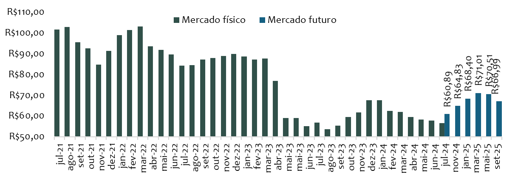 No primeiro semestre de 2024, os embarques foram recorde. Com o forte volume embarcado, fica a dúvida quanto à demanda no segundo semestre. Com as compras aceleradas, dois comportamentos podem ocorrer:
