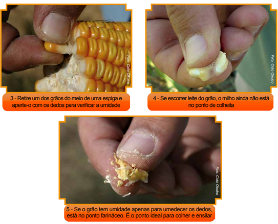 A ensilagem do milho começa pelo ponto de colheita, nesse caso, o ponto farináceo é definido como o ponto ideal.