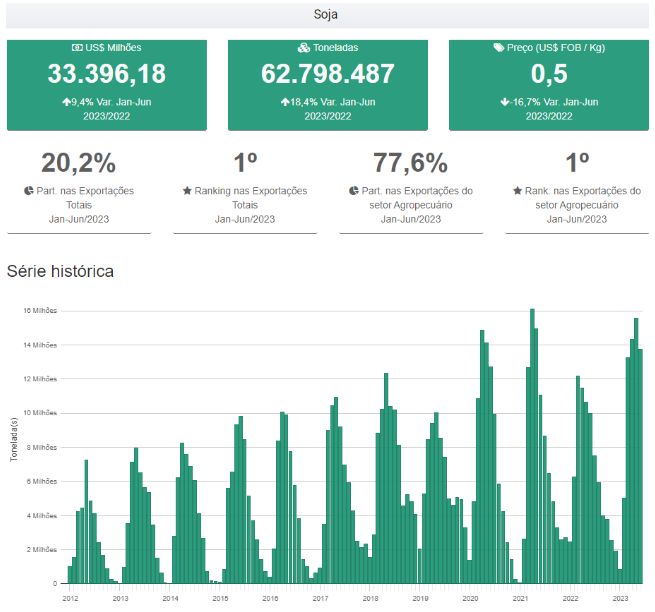 Figura 2. Dados referentes à exportação brasileira de soja (volumes, preços e faturamento)
