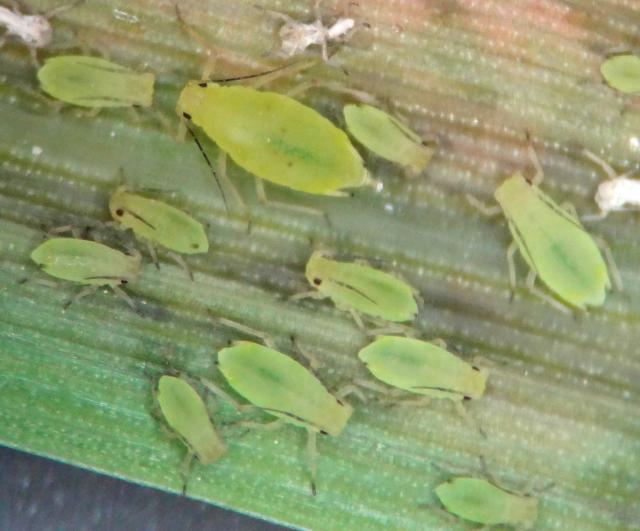 Colônia de Schizaphis graminum. Foto: Paulo Roberto Valle da Silva Pereira/Embrapa