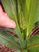 Foto 13, Foto 14 e Foto 15. Interação de ataque de pragas e doenças no milho