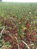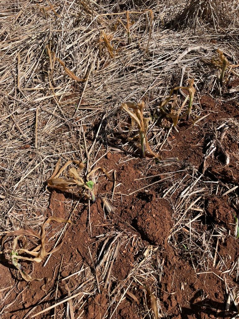 Foto 5 e Foto 6. Lavouras de milho com deficiência hídrica e sob altas temperaturas