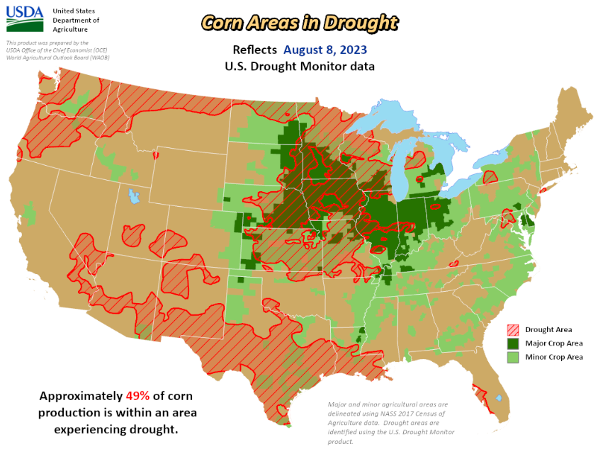 Figura 2b. Condição de seca nas lavouras de milho, nos Estados Unidos, até 8 de agosto
