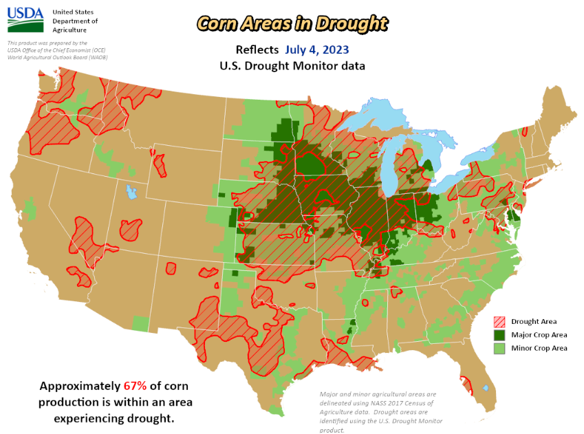 Figura 2a. Condição de seca nas lavouras de milho, nos Estados Unidos, até 4 de julho