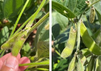 Flores e vagens pequenas também podem ser danificadas, gerando um impacto direto na produtividade da área e na qualidade do produto colhido.