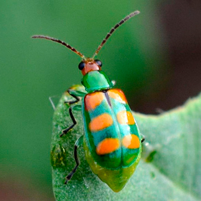 Comumente chamada de vaquinha-da-soja, vaquinha-patriota ou apenas vaquinha, a Diabrotica speciosa é um inseto polífago, que pode atacar diferentes tipos de espécies produtivas, como milho, soja, feijão, batata, entre outras.