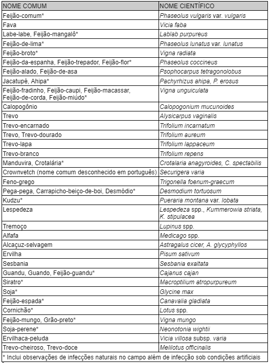 Tabela 1. Hospedeiros conhecidos da ferrugem-asiática da soja causada por Phakopsora pachyrhizi.